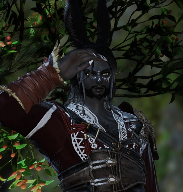 Bottom/brat/submissiveA viera'qote hailing from Gridania and seemingly forever bound to the greenery. If he seems unusually beautiful or reads like a sylph, he'll never willingly tell. Wrapped in mysteries and alluringly unavailable, he's eager to share a bed, but unforthcoming with his heart. He runs a large and prosperous fae themed club in the greenery of Gridania, though the business isn't as clean as its owner and front would have you believe. Perhaps you're too distracted by his coy and flirty nature to notice the darkness around you...or perhaps you're as lost in sin as he is.